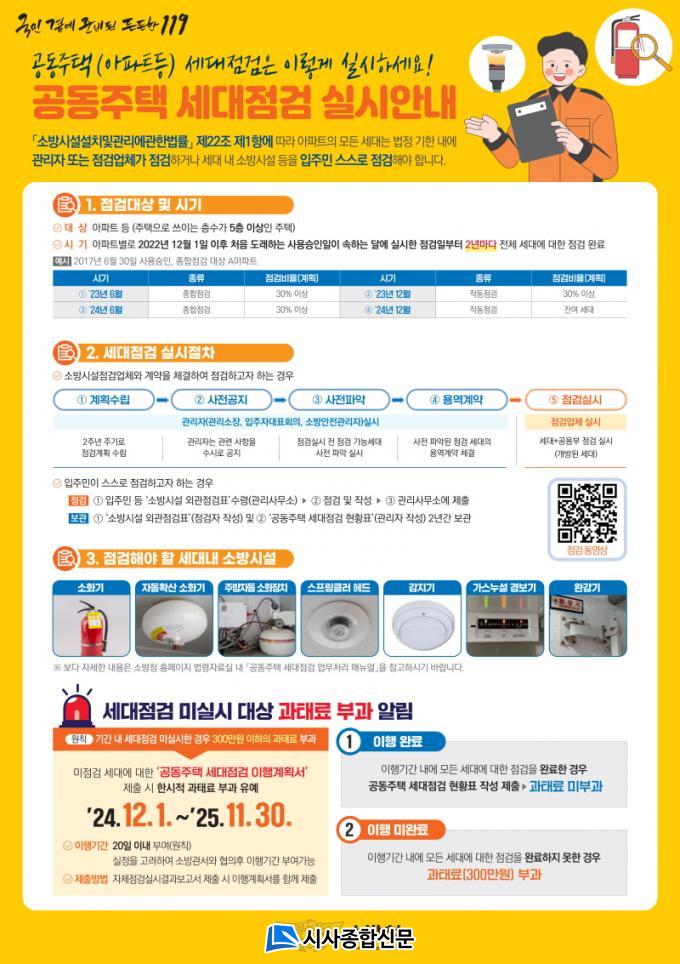 ¼Ò¹æ½Ã¼³ ¼³Ä¡ ¹× °ü¸®¿¡ °üÇÑ ¹ý·ü ¹× °ü·Ã ½ÃÇà·É¡¤½ÃÇà±ÔÄ¢ °³Á¤¿¡ µû¶ó, 2022³â 12¿ù 1ÀϺÎÅÍ °øµ¿ÁÖÅÃÀÇ °ü¸®ÀÚ ¹× ÀÔÁÖ¹ÎÀº 2³â¸¶´Ù ¼¼´ë ³» ¼Ò¹æ½Ã¼³ Á¡°ËÀ» Àǹ«ÀûÀ¸·Î ½Ç½ÃÇØ¾ß ÇÑ´Ù.