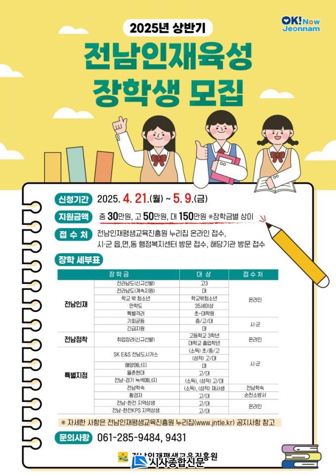 Àü³²ÀÎÀç ÀåÇбÝÀº »ó¹Ý±â¿¡ ¼ºÀû ¿ì¼öÀÚ¸¦ ´ë»óÀ¸·Î ÇÏ´Â Àü³²µµ ÀåÇбÝ, »çȸÀû ¹è·Á °èÃþÀ» Áö¿øÇÏ´Â ±âȸ±Õµî ÀåÇÐ±Ý µî ÃÑ 6Á¾, 399¸íÀ» Áö¿øÇÑ´Ù.