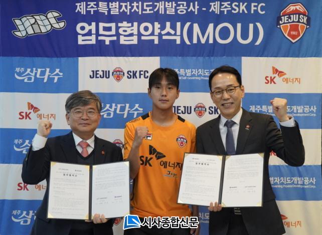 Á¦ÁÖSK´Â 4¿ù 28ÀÏ(¿ù) Ŭ·´ÇϿ콺¿¡¼ Á¦ÁÖÆ¯º°ÀÚÄ¡µµ°³¹ß°ø»ç¿Í ¾÷¹«Çù¾à½ÄÀ» ÁøÇàÇß´Ù. À̳¯ ¾÷¹«Çù¾à½Ä¿¡´Â ¹é°æÈÆ Á¦ÁÖÆ¯º°ÀÚÄ¡µµ°³¹ß°ø»ç »çÀå°ú ±¸Ã¢¿ë Á¦ÁÖSK FC ´ëÇ¥À̻縦 ºñ·ÔÇØ ±èÁØÇÏ ¹× ¾ç ±â°ü °ü°èÀÚµéÀÌ Âü¼®ÇØ ÀÚ¸®¸¦ ºû³»ÁÖ¾ú´Ù.