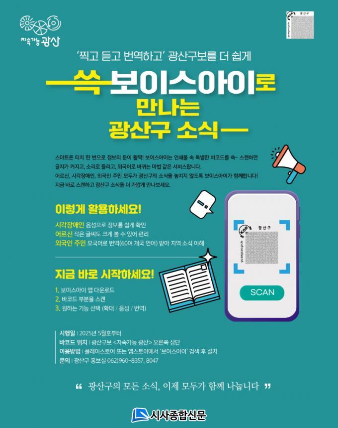 [½Ã»çÁ¾ÇսŹ® = ¿À½ÂÅà ±âÀÚ] ±¤Áֽà ±¤»ê±¸(±¸Ã»Àå ¹Úº´±Ô)´Â ½Ã°¢Àå¾ÖÀÎ, °í·ÉÀÚ, ¿Ü±¹ÀÎ ÁֹΠµî Á¤º¸ Á¢±ÙÀÌ ¾î·Á¿î ½Ã¹ÎµéÀ» À§ÇØ ±¤»ê±¸º¸ 5¿ùÈ£ºÎÅÍ ¡®º¸À̽º ¾ÆÀÌ(VOICE-EYE)¡¯ ¼ºñ½º¸¦ µµÀÔÇÑ´Ù°í 30ÀÏ ¹àÇû´Ù.