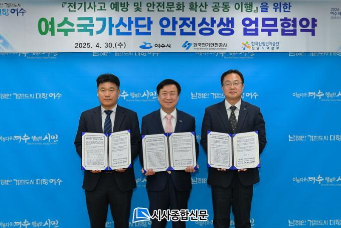 [½Ã»çÁ¾ÇսŹ® = ¿À½ÂÅà ±âÀÚ] ¿©¼ö½Ã(½ÃÀå Á¤±â¸í)°¡ Áö³´Þ 30ÀÏ ½ÃÀå½Ç¿¡¼ Çѱ¹»ê¾÷´ÜÁö°ø´Ü Àü³²Áö¿ªº»ºÎ, Çѱ¹Àü±â¾ÈÀü°ø»ç ¿©¼öÁö»ç¿Í ¿©¼ö±¹°¡»ê´Ü ¾ÈÀü»ó»ýÀ» À§ÇÑ ¾÷¹«Çù¾àÀ» ü°áÇß´Ù.