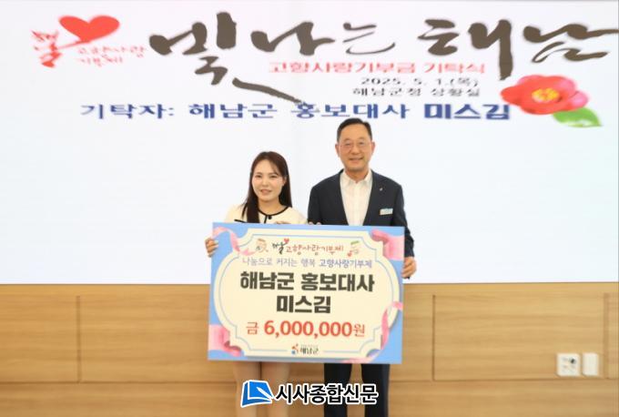 TVÁ¶¼± ¹Ì½ºÆ®·Ô3 Ã⿬ÀڷΠȰ¾àÇÑ ÇØ³² Ȳ»ê¸é Ãâ½ÅÀÇ ¹Ì½º±èÀº °íÇâ»ç¶û±âºÎ±Ý 600¸¸¿øÀ» ±âŹÇÏ¸ç °íÇâ»ç¶ûÀÇ ¸¶À½À» ÀüÇß´Ù. ÇØ³²±º È«º¸´ë»ç·Î Ȱ¹ßÇÑ È°µ¿À» ÆîÄ¡°í ÀÖ´Â ¹Ì½º±èÀº ÇØ³²±º¹ÎÀÇ ³¯À» ¸Â¾Æ 4¿ù 28ÀÏ °³ÃÖµÈ Àü±¹³ë·¡ÀÚ¶û ÃÊ´ë°¡¼ö·Î Ã⿬, ÇÑÃþ ¼ºÀåÇÑ ¸ð½ÀÀ» ¼±º¸À̱⵵ Çß´Ù.