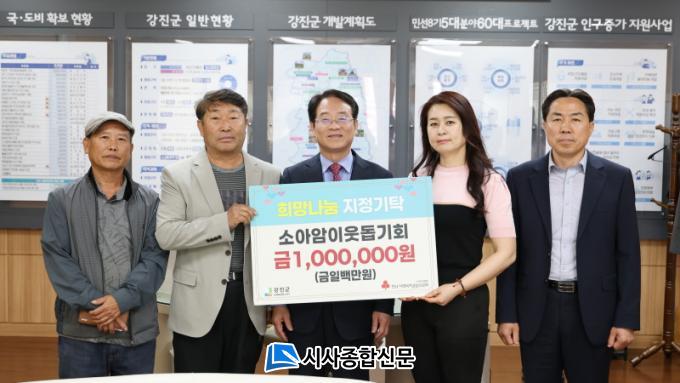 | ¼Ò¾Æ¾ÏÀÌ¿ôµ½±âȸ, °Áø±º¿¡ ÁöÁ¤±âŹ±Ý 100¸¸ ¿ø Àü´Þ ²ÙÁØÇÑ ±âŹÀ¸·Î ¼±ÇÑ ¿µÇâ·Â ÀüÆÄ |