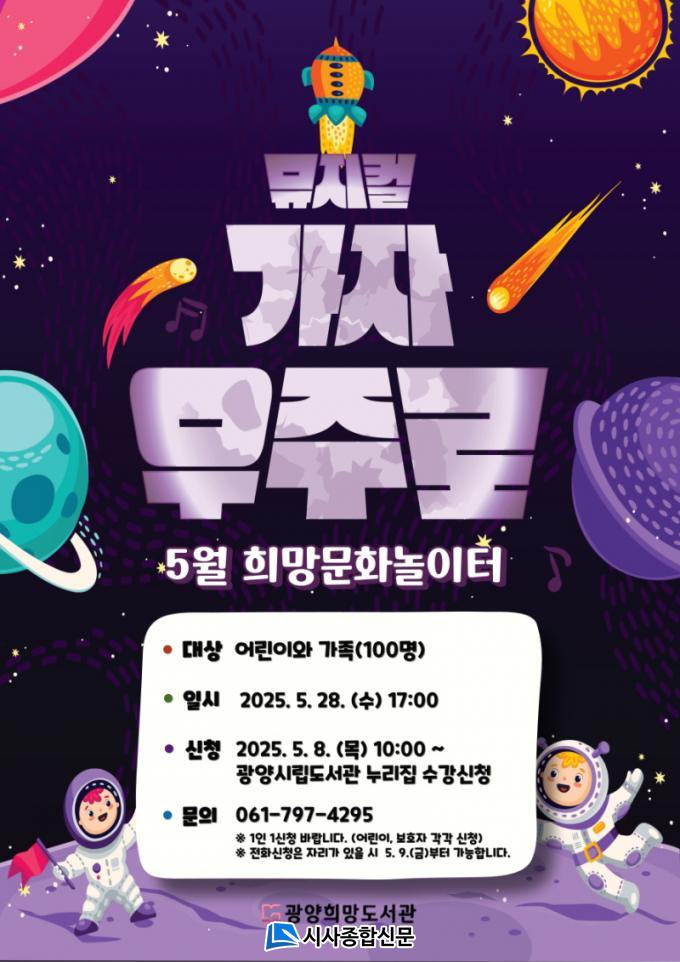 [½Ã»çÁ¾ÇսŹ® = Àå¹Î±Ô ±âÀÚ] ±¤¾çÈñ¸Áµµ¼°üÀº ¿À´Â 5¿ù 28ÀÏ(¼ö) ¿ÀÈÄ 5½Ã ²Þ³ª¹«±ØÀå¿¡¼ ¾î¸°ÀÌ °¡Á· 100¿© ¸íÀ» ´ë»óÀ¸·Î °úÇÐ ¹ÂÁöÄà ¡®°¡ÀÚ! ¿ìÁÖ·Î!¡¯¸¦ ¼±º¸Àδٰí 8ÀÏ ¹àÇû´Ù.