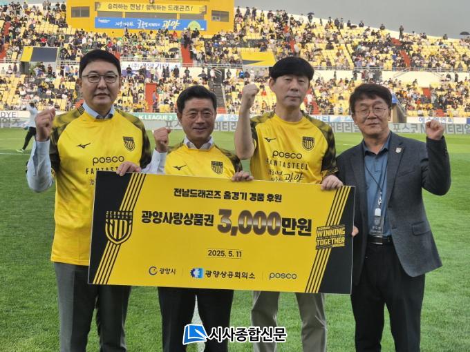 [½Ã»çÁ¾ÇսŹ® = ¿À½ÂÅà ±âÀÚ] ±¤¾ç»ó°øÈ¸ÀǼÒ(ȸÀå ¿ì±¤ÀÏ)°¡ 5¿ù 11ÀÏ(ÀÏ)¿¡ ¿¸° Àü³²µå·¡°ïÁî Ȩ°æ±â °³¸·Àü¿¡ Á¤ÀÎÈ ±¤¾ç½ÃÀå, °íÀçÀ± ±¤¾çÁ¦Ã¶¼ÒÀå, ±è±ÔÈ« Àü³²µå·¡°ïÁî »çÀå µîÀÌ Âü¼®ÇÑ °¡¿îµ¥ 2025½ÃÁð Ȩ°æ±â °æÇ° ¡®±¤¾ç»ç¶û»óǰ±Ç¡¯ 3,000¸¸¿øÀ» ÈÄ¿øÇÏ´Â Çù¾à ¹× Àü´Þ½ÄÀ» °³ÃÖÇÏ¿´´Ù°í ¹àÇû´Ù.