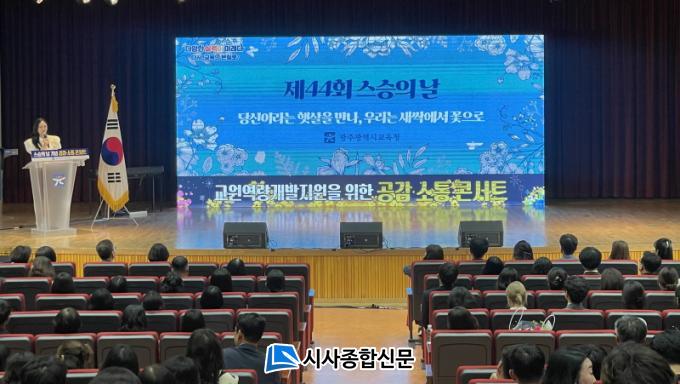 ÀÌÁ¤¼± ±³À°°¨Àº ¡°À̹ø Çà»ç°¡ Á¦44ȸ ½º½ÂÀÇ ³¯À» ±â³äÇϰí, ±³Á÷ÀÇ °¡Ä¡¸¦ ÀçÈ®ÀÎÇϰí ȸº¹Àû ¸®´õ½ÊÀ» ÇÔ²² °í¹ÎÇÏ´Â ¼ÒÁßÇÑ ÀÚ¸®°¡ µÇ±æ ¹Ù¶õ´Ù¡±¸ç ¡°¼±»ý´ÔµéÀÌ Àü¹®¼º°ú ÇູÀ» ÇÔ²² Ãß±¸ÇÒ ¼ö ÀÖµµ·Ï ´Ù¾çÇÑ Áö¿øÀ» ¾Æ³¢Áö ¾Ê°Ú´Ù¡±°í ¸»Çß´Ù.