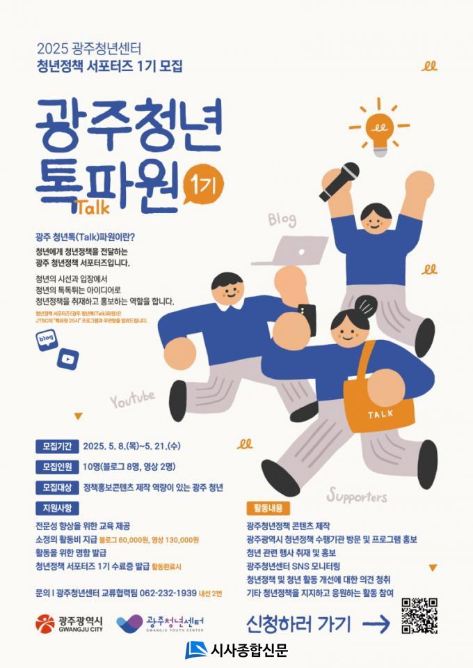 Âü¿©¸¦ Èñ¸ÁÇϴ û³âÀº ±¤ÁÖû³â¼¾ÅÍ¿¡ ¹®ÀÇÇϰųª ±¤ÁÖû³âÅëÇÕÇ÷§Æû(youth.gwangju.go.kr)¿¡¼ ¿Â¶óÀÎÀ¸·Î ½ÅûÇÏ¸é µÈ´Ù. ¼±¹ßµÈ û³âÅåÆÄ¿øÀº 5¿ù¸» ¹ß´ë½Ä°ú ½Ç¹«±³À°À» °ÅÄ£ ÈÄ 11¿ù±îÁö ¾à 6°³¿ù°£ Ȱµ¿ÇÒ ¿¹Á¤ÀÌ´Ù.