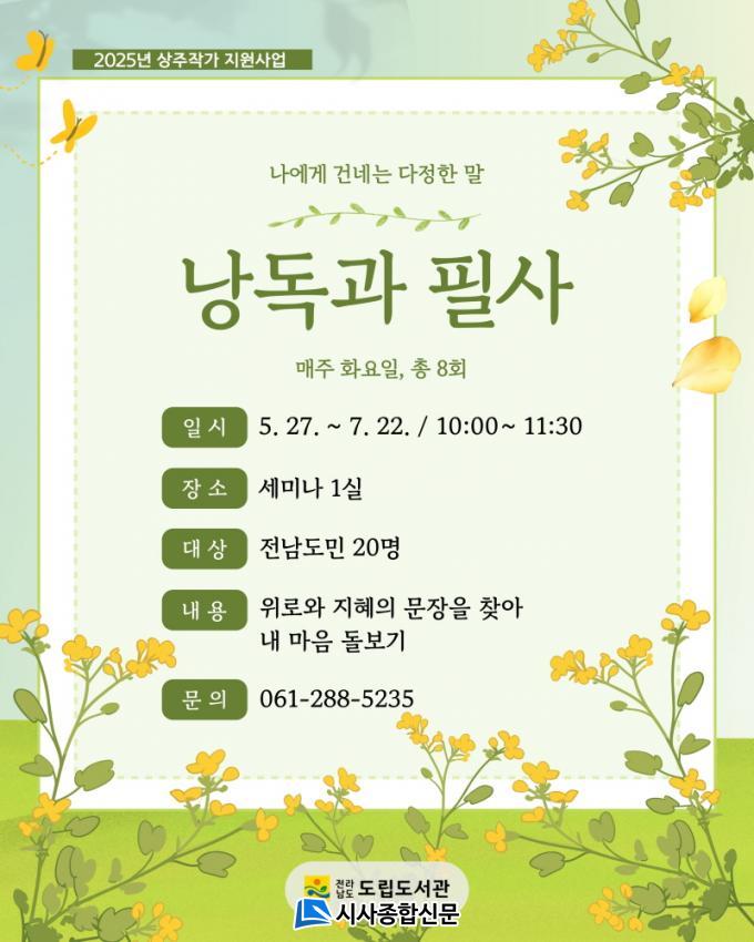 ¹®ÇÐ »óÁÖÀÛ°¡ Áö¿ø»ç¾÷ Âü°¡ÀÚ´Â ¼±Âø¼øÀ¸·Î ¸ðÁýÇÑ´Ù. ÀÚ¼¼ÇÑ ³»¿ëÀº Àü³²µµ¸³µµ¼°ü ´©¸®Áý(https://lib.jeonnam.go.kr)¿¡¼ È®ÀÎÇϰųª ÀüÈ(061-288-5235)·Î ¹®ÀÇÇÏ¸é µÈ´Ù.
