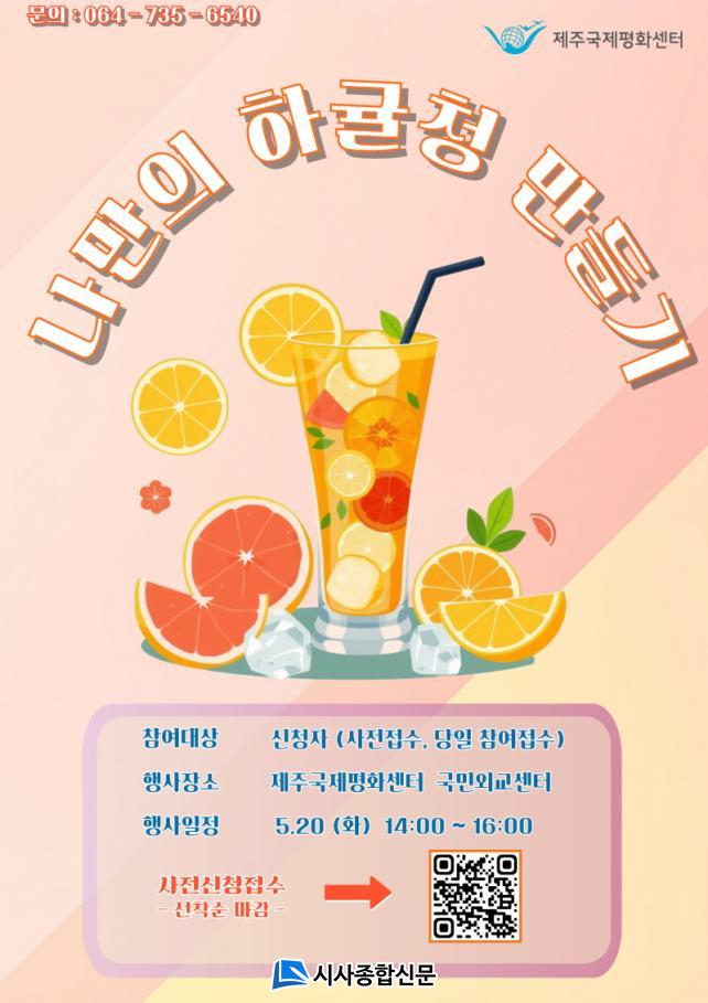 | Á¦ÁÖ±¹Á¦Æòȼ¾ÅÍ, ÆòÈ ³ª´® ÇϱÖû ¸¸µé±â ÇÁ·Î±×·¥ ÁøÇà 5¿ù 20ÀÏ ÇϱÖû ´ã±â&³ª´® ¹«·á Çà»ç, »çÀü¡¤ÇöÀå Á¢¼ö ÅëÇØ ¼±Âø¼ø 20¸í ´ë»ó |