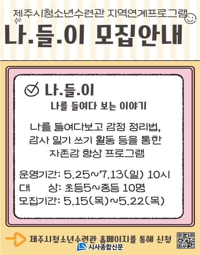 À̹ø ÇÁ·Î±×·¥Àº 5¿ù 25ÀϺÎÅÍ 7¿ù 13ÀϱîÁö ¸ÅÁÖ ÀÏ¿äÀÏ Á¦ÁÖ½Ãû¼Ò³â¼ö·Ã°ü¿¡¼ ÃÑ 7ȸ¿¡ °ÉÃÄ ÁøÇàµÇ¸ç, ÀÚÁ¸°¨ Çâ»ó, ½ºÆ®·¹½º ÇØ°á ¹æ¹ý ã±â µî ¡®Àڱ⵹º½¡¯ Áß½ÉÀÇ È°µ¿À¸·Î ±¸¼ºµÇ¾î ÀÖ´Ù.