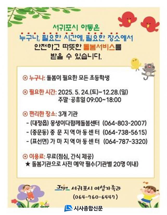 ¸Â¹úÀÌ °¡±¸ Áõ°¡ µî ¾Æµ¿ º¸È£ÀÚµéÀÇ ´Ù¾çÇÑ ±Ù·ÎÇüÅ º¯È¿¡ µû¸¥ µ¹º½¼ö¿ä¿¡ ´ëÀÀÇϱâ À§ÇÏ¿© ½ÃÇàµÇ´Â ¾Æµ¿Æ´»õµ¹º½ ¼ºñ½º »ç¾÷Àº Åä․ÀÏ․°øÈÞÀÏ(09:00~18:00) µ¹º½ÀÌ ÇÊ¿äÇÑ ¼±ÍÆ÷½Ã ÃʵîÇлý(1~6Çгâ)ÀÌ¸é ´©±¸³ª, ÇÊ¿äÇÑ ½Ã°£¿¡, Æí¸®ÇÑ Àå¼Ò¿¡¼ ÀϽà µ¹º½¼ºñ½º¸¦ ÀÌ¿ëÇÒ ¼ö ÀÖ´Ù.