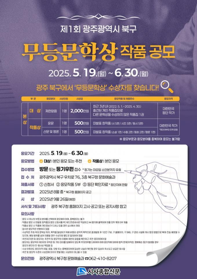 ¼ö»óÀÚ¿¡°Ô´Â ´ë»ó 2,000¸¸ ¿ø, ÀÛǰ»ó °¢ 500¸¸ ¿ø µî ÃÑ 3,000¸¸ ¿øÀÇ »ó±ÝÀÌ ÁÖ¾îÁö°í ½Ã»ó½ÄÀº ¿À´Â 9¿ù 26ÀÏ ¡®ºÏ±¸¹ÎÀÇ ³¯¡¯ ±â³äÇà»ç¿Í ¿¬°èÇÏ¿© ÁøÇàµÉ °èȹÀÌ´Ù.