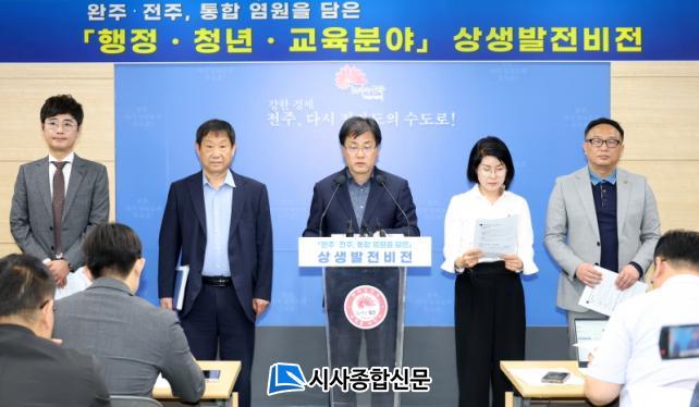 ÀüÁֽð¡ ¿ÏÁÖ¡¤ÀüÁÖ ÅëÇÕÀ» ¿°¿øÇϸç ÇàÁ¤¡¤±³À°¡¤Ã»³â ºÐ¾ß¿¡¼ µÎ Áö¿ªÀÇ µ¿¹Ý¼ºÀåÀ» À§ÇÑ »ó»ý¹ßÀü ¹æ¾ÈÀ» ³»³õ¾Ò´Ù.