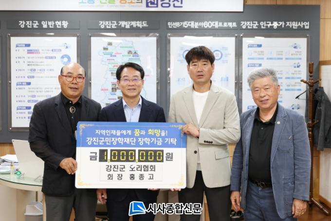 À̳¯ ±âŹ½Ä¿¡´Â °Áø±º ¿À¸®Çùȸ È«Á¾°í ȸÀå°ú Àå¶ôÈÄ Ãѹ«, ¹èÈij² ȸ¿øÀÌ ÇÔ²² Âü¼®ÇØ ÀåÇбâ±Ý 200¸¸ ¿øÀ» ±âŹÇß´Ù. ÀÌ Áß °Áø±º ¿À¸®Çùȸ°¡ 100¸¸ ¿ø, ÀÛõ¸éÀÇ ¼£·Ò¿À¸®³óÀå ¹èÈij² ´ëÇ¥°¡ 100¸¸ ¿øÀ» °¢°¢ ±âŹÇϸç, ´Üü¿Í °³ÀÎÀÇ °øµ¿ Âü¿©·Î Àǹ̸¦ ´õÇß´Ù. Áö³ 1994³â 8¿ù¿¡ ¼³¸³µÈ ³ó¸²¼ö»ê½ÄǰºÎ ¼Ò°üÀÇ »ç´Ü¹ýÀÎ ¿À¸®Çùȸ´Â ÆÇ¸Å ¼öÀͱÝÀÇ ÀϺθ¦ ²ÙÁØÈ÷ 2016³âºÎÅÍ ÇöÀç±îÁö 10ȸ¿¡ °ÉÃÄ ÃÑ 1,100¸¸ ¿øÀ» ÀåÇÐÀç´Ü¿¡ ±âŹÇϸç Áö¿ª»çȸ °øÇåÀ» À̾î¿À°í ÀÖ´Ù.