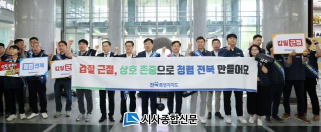 ÀüºÏƯº°ÀÚÄ¡µµ °¨»çÀ§¿øÈ¸ »ç¹«±¹Àº 27ÀÏ Ã»»ç 1Ãþ¿¡¼ Ãâ±Ù±æ Àü Á÷¿øÀ» ´ë»óÀ¸·Î ¡®»óÈ£ Á¸Áß ¹× °©Áú ±ÙÀý Ä·ÆäÀΡ¯À» ¿°í û·ÅÇÑ Á¶Á÷¹®È Á¶¼º¿¡ ³ª¼¹´Ù.