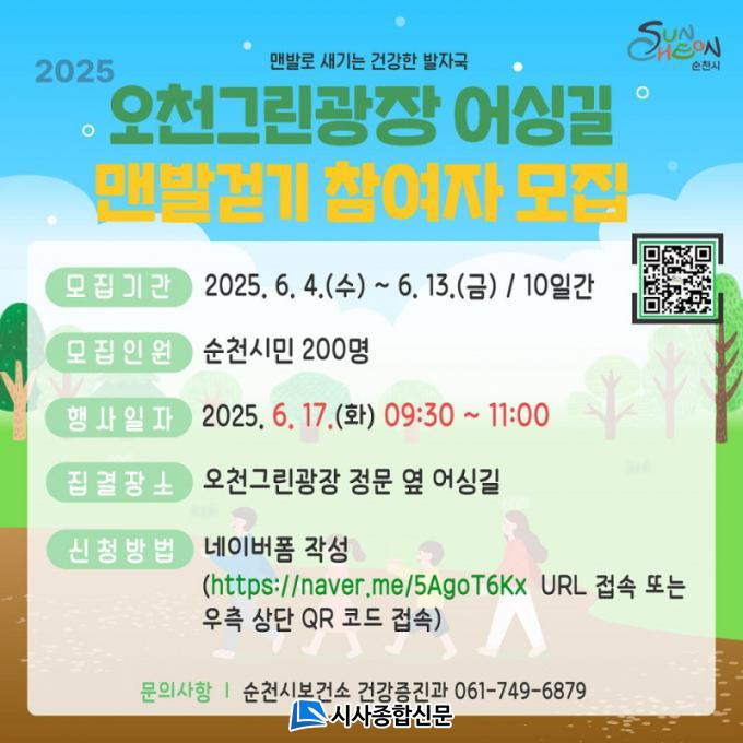 | ¼øÃµ½Ã, 2025 ¿Àõ±×¸°±¤Àå ¸Ç¹ß°È±â ±³½Ç Âü¿©ÀÚ ¸ðÁý ¿À´Â 4ÀϺÎÅÍ ¸Ç¹ß°È±â ±³½Ç Âü¿©ÀÚ 200¸í ¼±Âø¼ø ¸ðÁý |