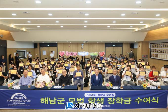 ±Í¶Ñ¶ó¹Ì ±×·ì ÃÖÁø¹Î ȸÀå°ú ¹®ÈÀç´Ü °ü°èÀÚµéÀÌ Âü¼®ÇÑ °¡¿îµ¥ ¿¸° ¼ö¿©½Ä¿¡¼´Â ÇØ³²±º Áß¡¤°í¡¤´ëÇлý 70¸í¿¡°Ô ÃÑ 5,000¸¸¿øÀÇ ÀåÇбݰú ÀåÇÐÁõ¼°¡ Àü´ÞµÆ´Ù.