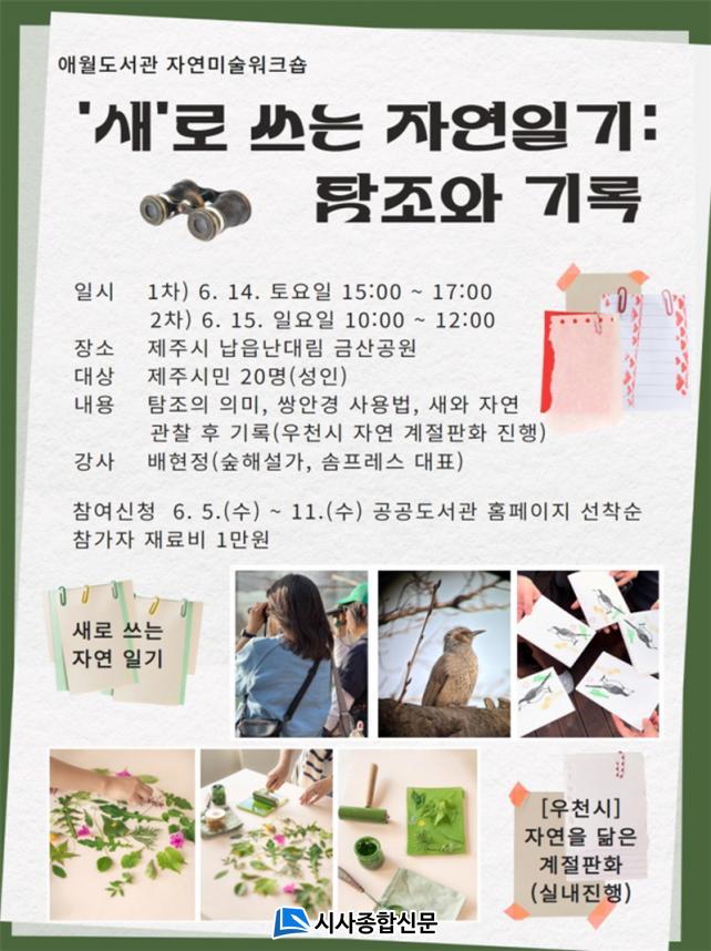 ƯÈ÷, À̹ø ÇÁ·Î±×·¥Àº ÀÚ¿¬ °üÂû°ú ¿¹¼ú Ç¥ÇöÀ» °áÇÕÇÑ ÀÚ¿¬¹Ì¼ú¿öÅ©¼óÀ¸·Î, ŽÁ¶ Ȱµ¿À» ÅëÇØ ½Ã¹ÎµéÀÌ ÀÚ¿¬À» ¼¼½ÉÇÏ°Ô µé¿©´Ùº¸´Â °æÇèÀ» Á¦°øÇÒ ¿¹Á¤ÀÌ´Ù. ´Ù¸¸, ¿ìõ ½Ã¿¡´Â µµ¼°ü ÁÖº¯ ÀÚ¿¬¹°À» Ȱ¿ëÇÑ °èÀý ÆÇÈ È°µ¿À¸·Î ´ëü ¿î¿µµÈ´Ù.