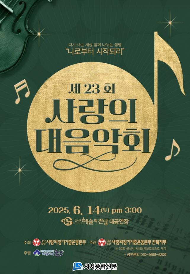 ±º»ê½Ã º¸°Ç¼Ò °ü°èÀÚ´Â ¡°À̹ø À½¾Çȸ¸¦ ÅëÇØ Àå±â±âÁõÀÌ ´©±º°¡¿¡°Ô »õ·Î¿î »îÀ» ¼±¹°ÇÏ´Â °í±ÍÇÑ ³ª´®ÀÓÀ» ½Ã¹ÎµéÀÌ °ø°¨ÇÏ±æ ¹Ù¶õ´Ù.¡±¶ó¸ç, ¡°±âÁõÀÚ¿Í À¯°¡Á·, ÈÄ¿øÀÚ¿¡°Ô´Â °¨»ç¿Í Á¸°æÀ», ÀÌ½Ä ´ë±âÀÚ¿¡°Ô´Â Èñ¸Á°ú ¿ë±â¸¦ ÀüÇÏ´Â ¶æ±íÀº ÀÚ¸®°¡ µÇ±â¸¦ ±â´ëÇÑ´Ù.¡±¶ó°í ÀüÇß´Ù.