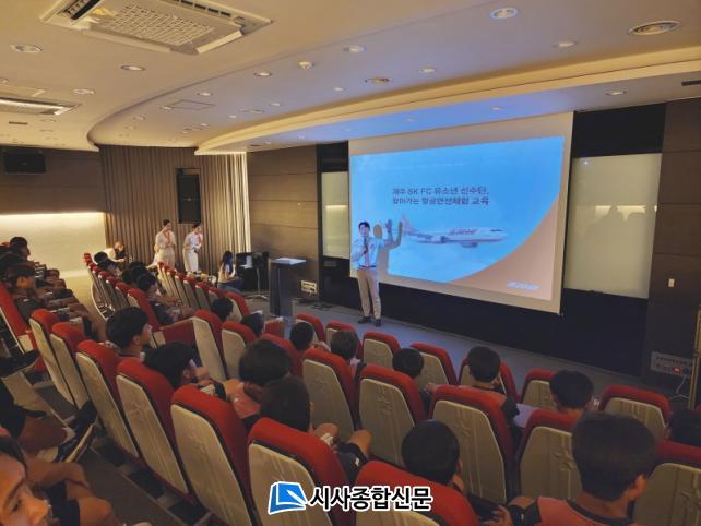 À̳¯ Ç×°ø¾ÈÀüüÇè±³½ÇÀ» ÁøÇàÇÑ Á¦ÁÖÇ×°ø °´½Ç½Â¹«¿øÀº ¡°Á¦ÁÖSK¼±¼ö´ÜÀÌ À§Ä¡ÇÑ Á¦ÁÖ´Â ¼¶À̶ó´Â Áö¸®Àû ¿ä¼Ò·Î Ç×°ø±â ÀÌ¿ëÀÌ ¸¹±â ¶§¹®¿¡ Ç×°ø ¾ÈÀü¿¡ ´ëÇØ ¼÷ÁöÇÏ´Â °ÍÀÌ ÁÁÀ» °Í °°´Ù°í »ý°¢Çß´Ù.¡±¸ç ¡°À̹ø ã¾Æ°¡´Â Ç×°ø¾ÈÀüüÇè±³À°ÀÌ À¯¼Ò³â ¼±¼öµé¿¡°Ô Àç¹Õ°í Ä£¼÷ÇÏ°Ô Ç×°ø ¾ÈÀüÀ» ¹è¿ï ¼ö ÀÖ´Â ½Ã°£À̾úÀ¸¸é ÁÁ°Ú´Ù.¡±°í ¸»Çß´Ù.