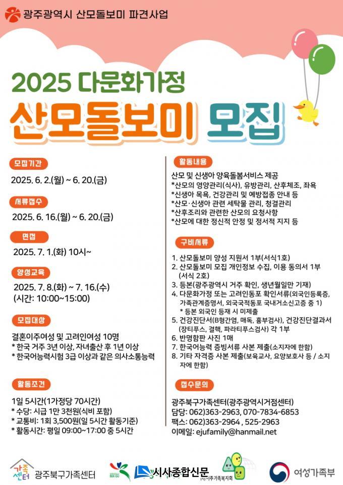 »ê¸ðµ¹º¸¹Ì ¼·ù Á¢¼ö´Â ¿À´Â 16ÀϺÎÅÍ 20ÀϱîÁö´Ù. ±¤Áֺϱ¸°¡Á·¼¾ÅÍ ´©¸®Áý(gjbukgu.familynet.or.kr)À» ÅëÇØ Áö¿ø¼¸¦ ³»·Á¹Þ¾Æ ÀÛ¼ºÇÑ µÚ ±¸ºñ¼·ù¿Í ÇÔ²² À̸ÞÀÏ(ejufamily@hanmail.net) ¶Ç´Â ÆÑ½º(062-363-2964, 062-525-2963)·Î ½ÅûÇÏ¸é µÈ´Ù. ÀÚ¼¼ÇÑ »çÇ×Àº ±¤Áֺϱ¸°¡Á·¼¾ÅÍ(062-363-2963, 070-7834-6853)·Î ¹®ÀÇÇÏ¸é µÈ´Ù.