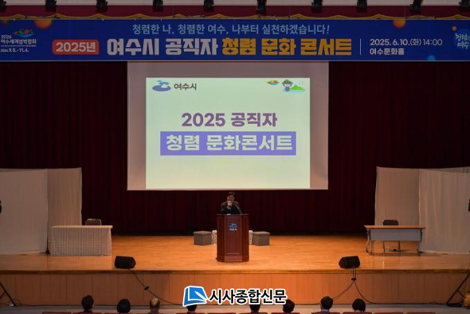 | Á¤±â¸í ¿©¼ö½ÃÀåÀÌ Áö³ 10ÀÏ ¿©¼ö¹®ÈȦ¿¡¼ °³ÃÖµÈ ¡®2025³â °øÁ÷ÀÚ Ã»·Å ¹®È ÄܼƮ¡¯¿¡¼ û·Å ½Çõ ¸Þ½ÃÁö¸¦ Àü´ÞÇϰí ÀÖ´Ù.