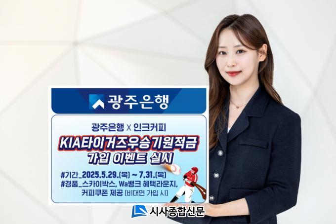 À̺¥Æ® ´ë»ó »óǰÀÎ ¡®KIAŸÀ̰ÅÁî¿ì½Â±â¿øÀû±Ý¡¯Àº Áö¿ª ¸í¹®±¸´Ü KIAŸÀ̰ÅÁîÀÇ ¿ì½ÂÀ» ±â¿øÇϸç Áö¿ª¹Îµé°ú ÇÔ²² ÀÀ¿øÇÏ´Â ±¤ÁÖÀºÇà ´ëÇ¥ ½ºÅ׵𼿷¯ ½ÃÁð »óǰÀÌ´Ù. ¿ù 10¸¸ ¿øºÎÅÍ ÃÖ´ë 100¸¸ ¿ø±îÁö °¡ÀÔ °¡´ÉÇÑ Á¤¾×Àû¸³½Ä »óǰÀ¸·Î, ¿ì´ë±Ý¸® Æ÷ÇÔ ÃÖ°í ¿¬ 3.85%(±âº» ¿¬ 2.60%)ÀÇ ±Ý¸®¸¦ Á¦°øÇÑ´Ù.(2025.06.13. ±âÁØ)