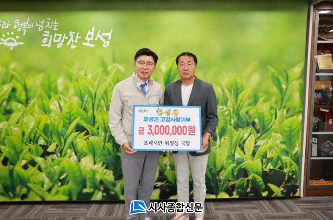 | À§Á¤¼º ÇÁ·¹½Ã¾È ±¤ÁÖÀü³²º»ºÎ ±¹Àå, º¸¼º±º¿¡ °íÇâ»ç¶û±âºÎ±Ý 300¸¸ ¿ø ±âŹ 2³â ¿¬¼Ó 300¸¸ ¿ø ±âºÎ·Î º¸¼º±º °íÇâ»ç¶û±âºÎÁ¦ ÀÀ¿ø |