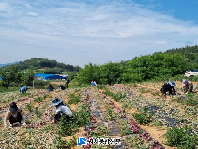 À̳¯ Àϼյ½±â¿¡´Â »çȸº¹Áö°ú Á÷¿ø 14¸íÀÌ Âü¿©ÇØ, Àη ºÎÁ·À¸·Î ¾î·Á¿òÀ» °Þ´Â Áö¿ª ³ó°¡¸¦ À§ÇØ Á¤¼º²¯ ¾çÆÄ ¼öÈ®À» µµ¿Ô´Ù. ƯÈ÷ ¾çÆÄ ¼öÈ®Àº ¹«´õ¿î ³¯¾¾ ¼Ó¿¡¼ ¹Ýº¹ ÀÛ¾÷ÀÌ À̾îÁö´Â Èûµç ÀÏÀ̾úÁö¸¸, Á÷¿øµéÀº ¹¬¹¬È÷ ÀÛ¾÷¿¡ ÀÓÇÏ¸ç ³ó°¡¿¡ ÈûÀ» º¸ÅÉ´Ù.
