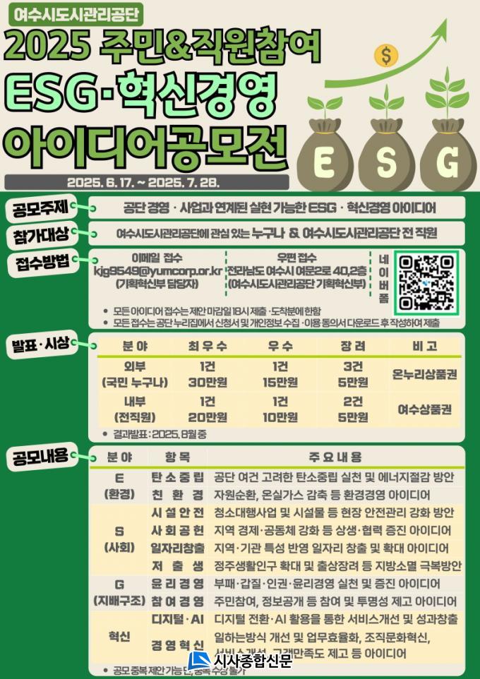 °ø¸ðÁÖÁ¦´Â °ø´Ü ¾÷¹«¿Í °ü·ÃµÈ ESG¡¤Çõ½ÅÀ¸·Î ¡ã ȯ°æ(ź¼ÒÁ߸³, ģȯ°æ) ¡ã »çȸ(½Ã¼³¾ÈÀü, »çȸ°øÇå, ÀÏÀÚ¸®Ã¢Ãâ, ÀúÃâ»ý) ¡ã Áö¹è±¸Á¶(À±¸®°æ¿µ, Âü¿©°æ¿µ) ¡ã Çõ½Å(µðÁöÅС¤AIÇõ½Å, °æ¿µÇõ½Å) 4°³ ºÐ¾ßÀÌ´Ù.