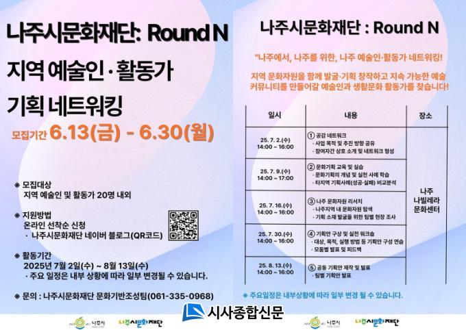 ³ªÁֽù®ÈÀç´Ü(´ëÇ¥ÀÌ»ç ±èÂùµ¿)Àº Áö¿ª ¿¹¼úÀΰú ¹®È¿¹¼ú Ȱµ¿°¡ÀÇ Ã¢ÀÛ ¿ª·® °È¿Í ³×Æ®¿öÅ© ±â¹Ý Á¶¼ºÀ» À§ÇÑ 2025³â Áö¿ª¹®È ³×Æ®¿öÅ· ÇÁ·Î±×·¥ ¡®Round N¡¯À» º»°Ý ÃßÁøÇÑ´Ù.