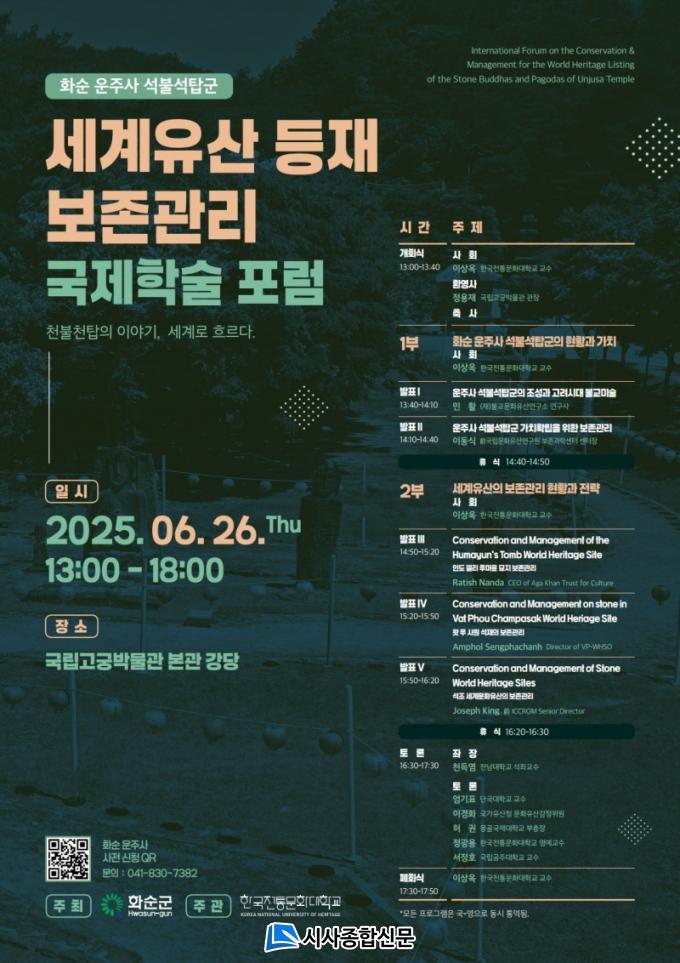 À̹ø ±¹Á¦ÇмúÆ÷·³Àº ¼¼°èÀ¯»ê ÀáÁ¤ ¸ñ·Ï¿¡ µîÀçµÈ ȼø ¿îÁÖ»ç ¼®ºÒ¼®Å¾±ºÀÇ º¸Á¸¡¤°ü¸®¸¦ ÁÖÁ¦·Î ¹®ÈÀ¯»ê º¸Á¸¡¤°ü¸® ÇöÀå¿¡¼ Ȱ¹ßÈ÷ Ȱµ¿Çϰí ÀÖ´Â ±¹³»¿Ü Àü¹®°¡¿Í °ü°è ´ç»çÀÚ¸¦ ÃÊûÇÏ¿© ¹®ÈÀ¯»ê º¸Á¸¿¡ °üÇÑ ¿¬±¸ µ¿ÇâÀ» °øÀ¯Çϰí, ¿îÁÖ»ç ¼®ºÒ¼®Å¾±ºÀÇ º¸Á¸ ¹× ¹ßÀü ¹æÇâÀ» ¸ð»öÇÏ´Â ÀÚ¸®ÀÌ´Ù.