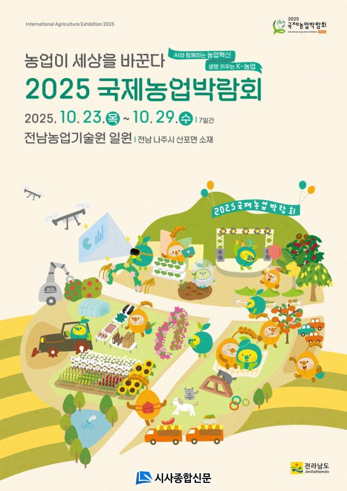 2025 ±¹Á¦³ó¾÷¹Ú¶÷ȸ´Â ¿À´Â 10¿ù 23ÀϺÎÅÍ 29ÀϱîÁö ³ªÁÖ »êÆ÷¸é Àü³²³ó¾÷±â¼ú¿ø ÀÏ¿ø¿¡¼ °³ÃֵȴÙ. ¡®AI¿Í ÇÔ²²ÇÏ´Â ³ó¾÷Çõ½Å, »ý¸í Ű¿ì´Â K-³ó¾÷¡¯¸¦ ÁÖÁ¦·Î ¹Ì·¡ ³ó¾÷ÀÇ ºñÀü°ú Çõ½Å ±â¼úÀ» ¼±º¸ÀÏ ¿¹Á¤ÀÌ´Ù.