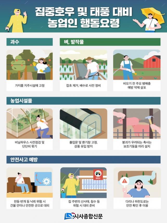 ±¸Ã¼ÀûÀ¸·Î ½Ã´Â ±â»ó »óȲ¿¡ ´ëÇØ¼´Â SNS¿Í ¹®ÀÚ¸Þ½ÃÁö¸¦ ÅëÇØ ½Ç½Ã°£À¸·Î Àü´ÞÇϰí ÀÖÀ¸¸ç, °¢ ³ó°¡¿¡ ¡âÀ帶 Àü ±â»ó¿¹º¸¿¡ ÁÖÀǸ¦ ±â¿ïÀÏ °Í ¡â¹è¼ö·Î Á¤ºñ ¡â³óÀÛ¹° ÁöÁÖ ¼³Ä¡ ¡âºñ´ÒÇϿ콺 °á¼Ó ¹× ¹öÆÀ¸ñ º¸° µî öÀúÇÑ »çÀü ¿¹¹æÁ¶Ä¡¸¦ ´çºÎÇϰí ÀÖ´Ù.