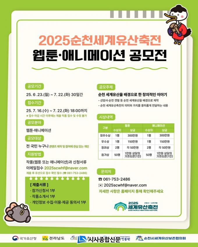 À̹ø °ø¸ðÀüÀº ¼øÃµÀÌ °£Á÷ÇÑ ¼¼°èÀ¯»êÀÇ ¸Å·ÂÀ» À¥Å÷°ú ¾Ö´Ï¸ÞÀ̼ÇÀ̶ó´Â ÄÜÅÙÃ÷·Î Ç¥ÇöÇÔÀ¸·Î½á, ¹Ì·¡¼¼´ë¿Í ¼ÒÅëÇÒ ¼ö ÀÖ´Â ¹®ÈÀû °¡Ä¡¸¦ âÃâÇϰíÀÚ Çϴµ¥ ÀÇÀǰ¡ ÀÖ´Ù. °ø¸ð ±â°£Àº 6¿ù 23ÀϺÎÅÍ 7¿ù 22ÀϱîÁöÀ̸ç, ÀÛǰ Á¢¼ö´Â 7¿ù 16ÀϺÎÅÍ 22ÀϱîÁö À̸ÞÀÏ(2025scwhf@naver.com)À» ÅëÇØ ÁøÇàµÈ´Ù.