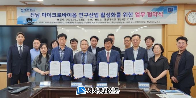 Áö³ 6¿ù 23ÀÏ Àü³² ³ªÁÖ¿¡ À§Ä¡ÇÑ µ¿½Å´ëÇб³¿¡¼ Âü¿©±â°üÀÌ Ã¼°áÇÑ Çù¾à ÁÖ¿ä ³»¿ë¿¡´Â ¡â°ü·Ã »ý¹°ÀÚ¿øÀÇ Áö¼Ó°¡´ÉÇÑ ÀÌ¿ëÀ» À§ÇÑ °øµ¿¿¬±¸ ¹ß±¼, ¡â¹Ì»ý¹° À¯ÀüÁ¤º¸ ¿¬±¸»ê¾÷ Àü¹®¿ä¿ø ¾ç¼º°úÁ¤ °³¹ß ¹× Çù¾÷ ¿î¿µÃ¼°è ¸¶·Ã, ¡â¿¬±¸ »ê¾÷±º À°¼ºÀ» À§ÇÑ »óÈ£ Çù·Â, ¡âÀü³² ¹ÙÀÌ¿À»ê¾÷ÀÇ Àû±ØÀû »óÈ£ ¹ßÀüÀ» À§ÇÑ ±³·ù ¹× Çù·Â µîÀÌ Æ÷ÇԵƴÙ.