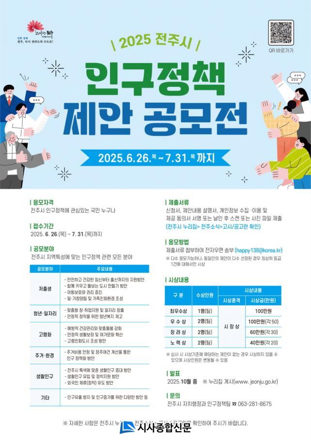 ÀüÁֽà °ü°èÀÚ´Â ¡°À̹ø 2025³â Àα¸Á¤Ã¥ Á¦¾È °ø¸ðÀüÀ» ÅëÇØ ÀüÁֽà Áö¿ª Ư¼º¿¡ ¸Â´Â ´Ù¾çÇÑ Á¦¾ÈÀÌ Á¢¼öµÅ ½Ã¹ÎÀÌ Ã¼°¨ÇÏ°í °ø°¨ÇÒ ¼ö ÀÖ´Â Á¤Ã¥ÀÌ °³¹ßµÉ ¼ö ÀÖµµ·Ï ¸¹Àº °ü½É°ú Âü¿©¸¦ ºÎʵ台´Ù¡±°í ¸»Çß´Ù.
