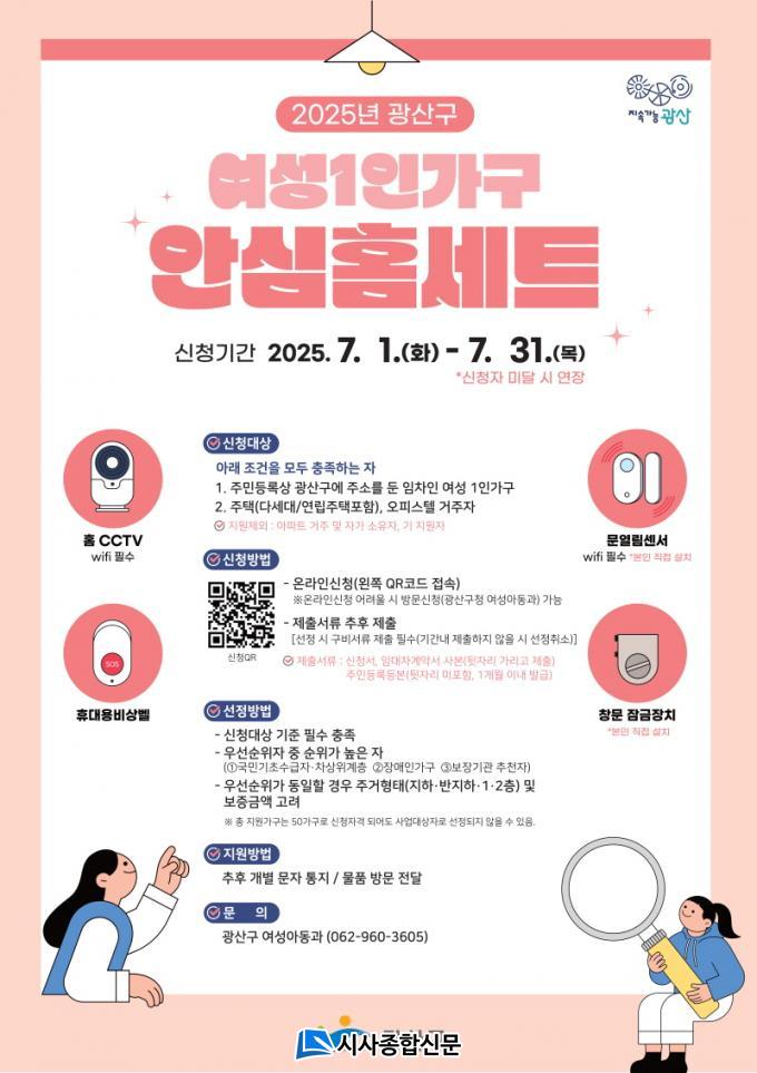¿©¼º 1ÀÎ °¡±¸ ¾È½ÉȨ¼¼Æ®´Â ¿©¼º 1ÀÎ °¡±¸°¡ °è¼ÓÇØ¼ ´Ã¾î³²¿¡ µû¶ó ¿©¼ºµéÀÇ ¾ÈÀüÀ» Áö۱â À§ÇØ ¸¶·ÃÇß´Ù. Áö¿ø ´ë»óÀº ±¤»ê±¸¿¡ °ÅÁÖÇÏ´Â ¿©¼º 1ÀÎ °¡±¸ Áß ÁÖÅÃ(´Ù¼¼´ë, ¿¬¸³ÁÖÅà Æ÷ÇÔ) ¶Ç´Â ¿ÀÇǽºÅÚ¿¡ °ÅÁÖÇÏ´Â ÀÓÂ÷ÀÎÀÌ´Ù.