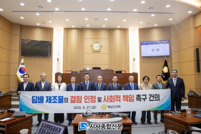 [½Ã»çÁ¾ÇսŹ® = ¿À½ÂÅà ±âÀÚ] ÇØ³²±ºÀÇȸ(ÀÇÀå À̼º¿Á)´Â 27ÀÏ ¿¸° º»È¸ÀÇ¿¡¼ ¡®´ã¹è Á¦Á¶¹°ÀÇ °áÇÔ ÀÎÁ¤ ¹× »çȸÀû Ã¥ÀÓ Ã˱¸ °ÇÀǾȡ¯À» äÅÃÇÏ¸ç ´ã¹è Á¦Á¶»ç¿¡ ´ëÇÑ »çȸÀû Ã¥ÀÓÀ» °·ÂÈ÷ Ã˱¸Çß´Ù.