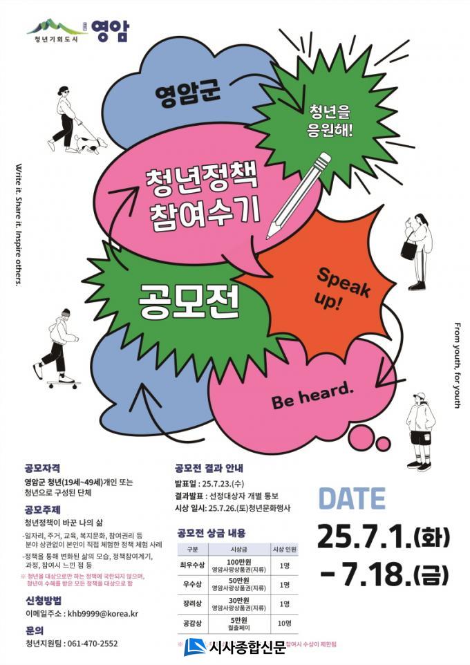 û³âÁ¤Ã¥ Âü¿© ¼ö±â °ø¸ðÀüÀÇ ÀÚ¼¼ÇÑ ³»¿ëÀº ¿µ¾Ï±ºÈ¨ÆäÀÌÁö °í½Ã°ø°í¶õ¿¡¼ º¼ ¼ö ÀÖ°í, ¾È³»´Â ¿µ¾Ï±º Àα¸Ã»³â°ú û³âÁö¿øÆÀ(061-470-2552)¿¡¼ ÇÑ´Ù.