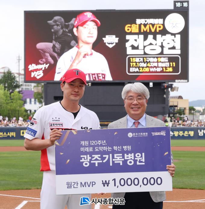 [½Ã»çÁ¾ÇսŹ® = ¿À½ÂÅà ±âÀÚ] KIA ŸÀ̰ÅÁî Åõ¼ö Àü»óÇöÀÌ ±¤Áֱ⵶º´¿ø¿¡¼ ½Ã»óÇÏ´Â 6¿ù ¿ù°£ MVP¿¡ ¼±Á¤µÆ´Ù. ½Ã»ó½ÄÀº Áö³ 4ÀÏ ±¤ÁÖ ·Ôµ¥Àü¿¡ ¾Õ¼ ¿·È´Ù.