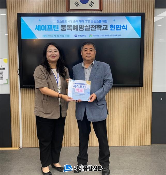 [½Ã»çÁ¾ÇսŹ® = °í¼º¹Î ±âÀÚ] Á¦ÁÖÆ¯º°ÀÚÄ¡µµ±¤¿ªÁ¤½Å°Ç°º¹Áö¼¾ÅÍ(¼¾ÅÍÀå Á¤¿µÀº)¿Í Á¦ÁÖÁßÇб³(±³Àå Àå»ó¿ì)´Â Áö³ 3ÀÏ, û¼Ò³â 4´ëÁßµ¶ ¿¹¹æÀ» À§ÇÑ¡¸2025³â û¼Ò³â 4´ëÁßµ¶ ¿¹¹æ ÇÁ·ÎÁ§Æ®¡¹ÀÇ ½ÃÀÛÀ» ¾Ë¸®´Â ¡®¼¼ÀÌÇÁƾÁßµ¶¿¹¹æ½ÇõÇб³¡¯ ÇöÆÇ½ÄÀ» ÁøÇàÇß´Ù°í ¹àÇû´Ù.