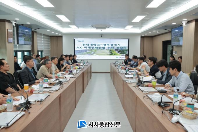 Àü³²´ë(ÃÑÀå À̱ٹè)¿Í ±¤ÁÖ½Ã(½ÃÀå °±âÁ¤)´Â 7¿ù 6ÀÏ(ÀÏ) ¿ÀÀü 8½ÃºÎÅÍ Àü³²´ëÇб³ º»ºÎ 3Ãþ ´ëȸÀǽǿ¡¼ ¡®AX ¹Ì·¡Àü·«»ê¾÷ ÃßÁø °£´ãȸ¡¯¸¦ °³ÃÖÇϰí, AI¡¤¸ðºô¸®Æ¼¡¤¹ÝµµÃ¼ µî ±¤ÁÖ¡¤Àü³²ÀÇ ÇÙ½É Àü·« »ê¾÷À» Áß½ÉÀ¸·Î »êÇÐÇù·Â ¹æ¾È°ú °øµ¿ ´ëÀÀ Àü·«À» ½Éµµ ÀÖ°Ô ³íÀÇÇß´Ù.
