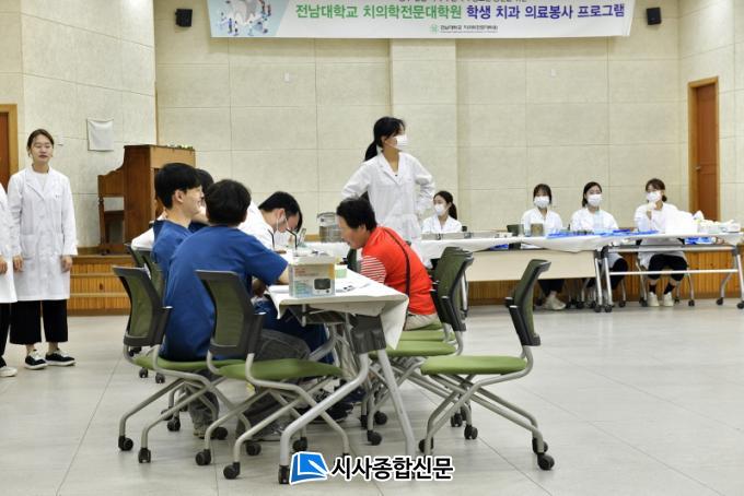 °í¼¸é ¹®¿¹È¸°ü¿¡¼ ÀÌ·ïÁø À̳¯ ºÀ»ç¿¡´Â Àü³²´ë Ä¡Àü¿ø»ý 40¿© ¸íÀÌ Âü¿©ÇØ °í¼¸é ¾î¸£½Å°ú ÁֹΠ40¿© ¸í¿¡°Ô ½ºÄÉÀϸµ(Ä¡¼® Á¦°Å), ±¸°°ËÁø, ·¹Áø ÃæÀü, ÀÇÄ¡ ¼¼Ã´ ¹× °ü¸® ±³À° µî ´Ù¾çÇÑ Ä¡°ú Áø·á ¼ºñ½º¸¦ Á¦°øÇß´Ù.