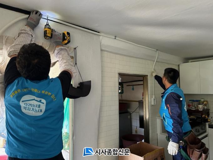 ¹«´õ¿î ³¯¾¾ ¼Ó ¿¾ÇÇÑ È¯°æ¿¡¼ °ÅÁÖÇϴ Ȧ¸ö ¾î¸£½ÅÀ» ´ë»óÀ¸·Î º¹Áö±âµ¿´ë¿øµéÀº ³°Àº ½ÌÅ©´ë¸¦ ö°ÅÇϰí, ³ëÈÄ º®Áö¸¦ ±³Ã¼ÇÏ´Â µî ÄèÀûÇÏ°í ¾ÈÀüÇÑ °ø°£À¸·Î ¹Ù²Ù´Â µ¥ ±¸½½¶¡À» Èê·È´Ù.