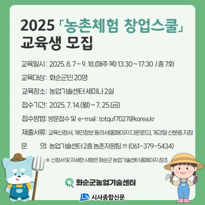 À̹ø ±³À°Àº 2025. 8. 7ÀÏ ~ 9. 18ÀϱîÁö ³ó¾÷±â¼ú¼¾ÅÍ¿¡¼ ¸ÅÁÖ ¸ñ¿äÀÏ ÃÑ 7ȸ·Î ÃßÁøµÇ¸ç, ȼø±º¹ÎÀ» ´ë»óÀ¸·Î ±³À°»ý 20¸íÀ» ¸ðÁýÇÒ ¿¹Á¤ÀÌ´Ù.