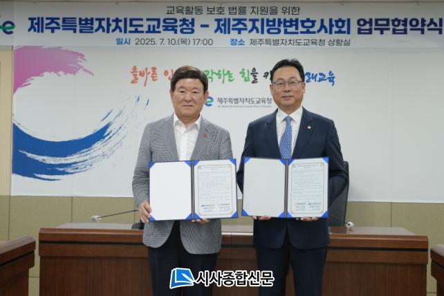 [½Ã»çÁ¾ÇսŹ® = °í¼º¹Î ±âÀÚ] Á¦ÁÖÆ¯º°ÀÚÄ¡µµ±³À°Ã»(±³À°°¨ ±è±¤¼ö)Àº Áö³ 10ÀÏ Á¦ÁÖÁö¹æº¯È£»çȸ(ȸÀå °í¿µ±Ç)¿Í ±³À°È°µ¿ º¸È£¸¦ À§ÇÑ ¹ý·üÁö¿ø ¾÷¹«Çù¾àÀ» ü°áÇß´Ù.