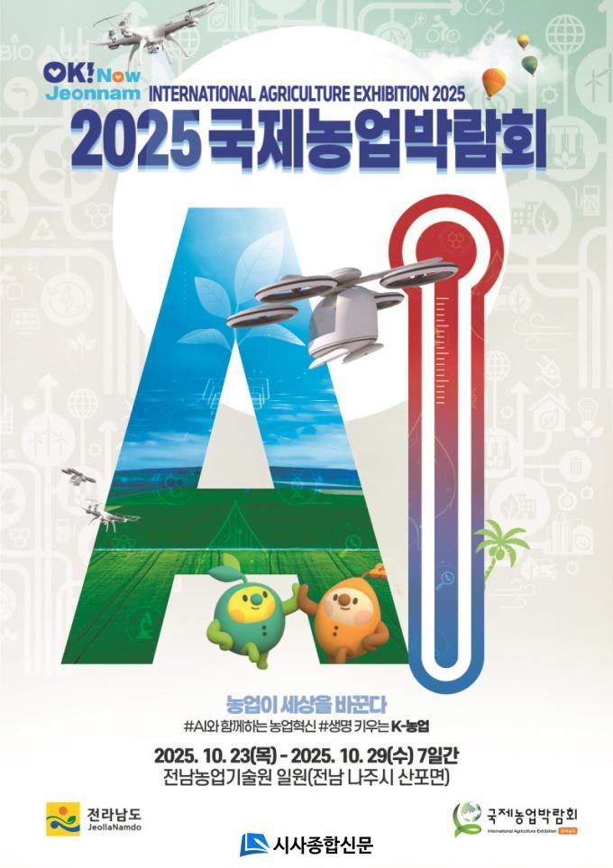 2025±¹Á¦³ó¾÷¹Ú¶÷ȸ´Â ¿À´Â 10¿ù 23ÀϺÎÅÍ 29ÀϱîÁö ³ªÁÖ »êÆ÷¸é Àü³²µµ³ó¾÷±â¼ú¿ø ÀÏ¿ø¿¡¼ °³ÃֵȴÙ. ¡®AI¿Í ÇÔ²²ÇÏ´Â ³ó¾÷Çõ½Å, »ý¸í Ű¿ì´Â K-³ó¾÷¡¯¸¦ ÁÖÁ¦·Î ¹Ì·¡ ³ó¾÷ÀÇ ºñÀü°ú Çõ½Å ±â¼úÀ» ¼±º¸ÀÏ ¿¹Á¤ÀÌ´Ù.