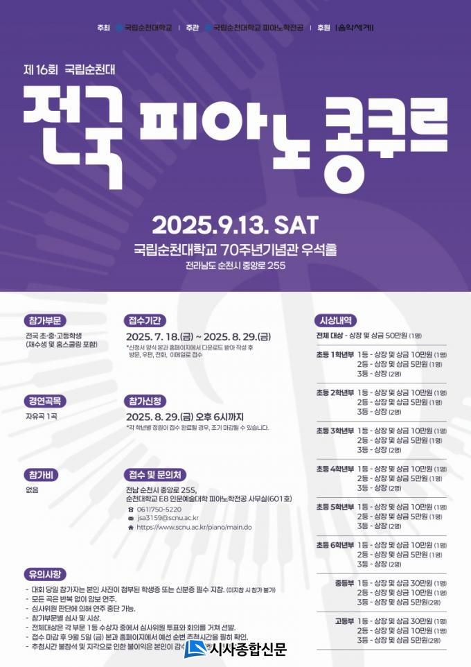 À̹ø ÄáÄí¸£´Â Àü±¹ ÃÊ¡¤Áß¡¤°íµîÇлýÀ» ´ë»óÀ¸·Î ÀÚÀ¯°î 1°î °æ¿¬ Çü½ÄÀ¸·Î ÁøÇàµÇ¸ç, Âü°¡ºñ´Â ¹«·á´Ù. Âü°¡ ½ÅûÀº 7¿ù 18ÀÏ(±Ý)ºÎÅÍ 8¿ù 29ÀÏ(±Ý)±îÁö·Î, Âü°¡ ½Åû¼´Â ±¹¸³¼øÃµ´ëÇб³ ÇǾƳëÇÐÀü°ø ȨÆäÀÌÁö(https://www.scnu.ac.kr/piano/main.do)¿¡¼ ´Ù¿î·Îµå °¡´ÉÇÏ´Ù.