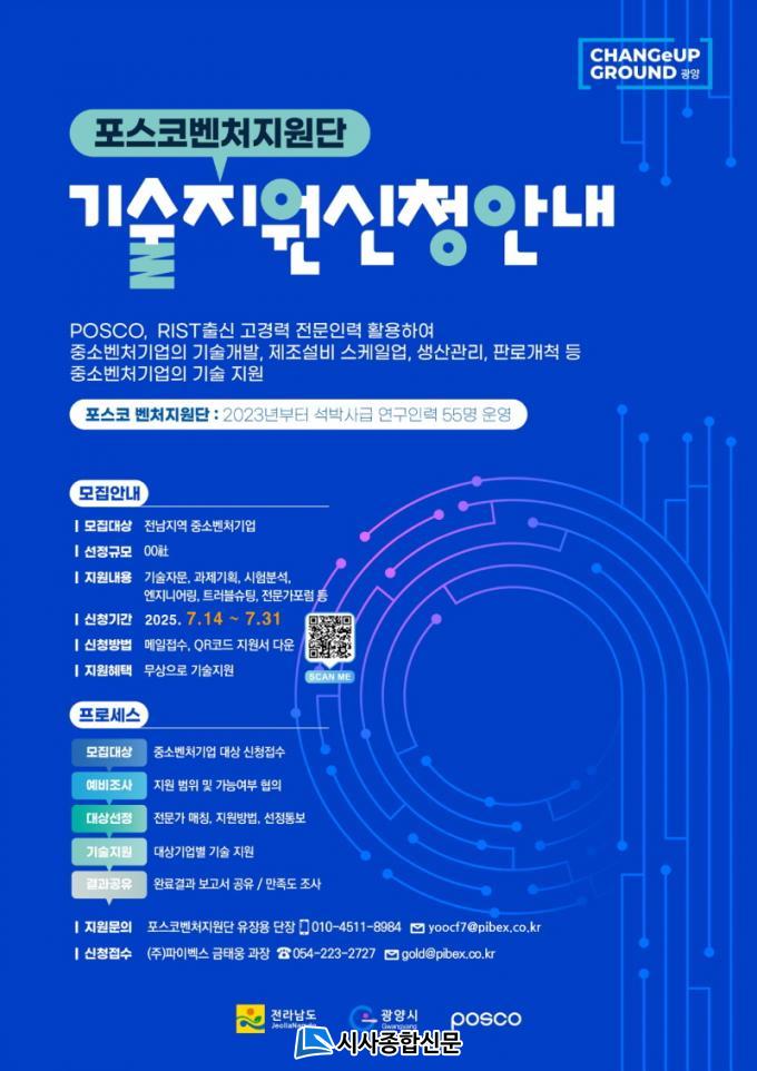º¥Ã³Áö¿ø´Ü ±â¼úÁö¿ø»ç¾÷ ½ÅûÀº 7¿ù 14ÀϺÎÅÍ 31ÀϱîÁö À̸ÞÀÏ ¶Ç´Â QRÄڵ带 ÅëÇØ Á¢¼öÇÒ ¼ö ÀÖÀ¸¸ç, ÀÚ¼¼ÇÑ ³»¿ëÀº ±¤¾ç½Ã ´©¸®Áý ¹× °ø°í¹®À» ÅëÇØ È®ÀÎ °¡´ÉÇÏ´Ù.